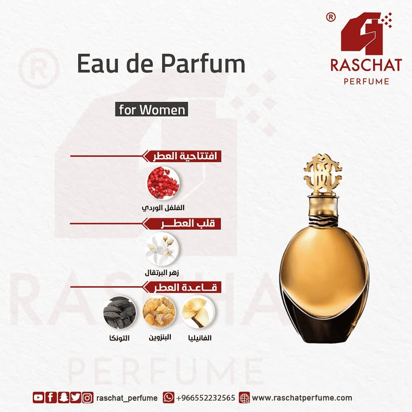 يمثل هذا العطر مزيجًا متناغمًا من الأنوثة والقوة، حيث يجمع بين النغمات الزهرية الناعمة والدفء الحلو الذي يبرز شخصية المرأة الأنيقة. الطابع العام مليء بالحيوية والدفء في آن واحد.