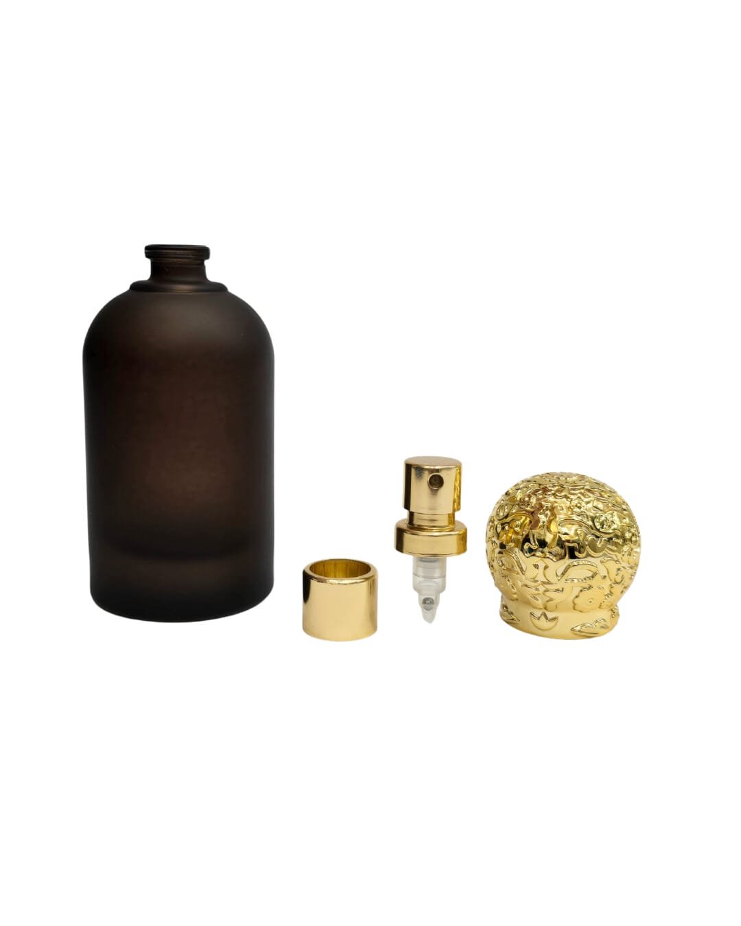 تم تصميم هذه الزجاجة بلون بني مميز يبرز الجمال الطبيعي ويعكس الأناقة. اللون البني يضيف إحساسًا بالدفء والتميز، مما يجعل الزجاجة مثالية لتعبئة العطور الرجالية والنسائية على حد سواء. التفاصيل الذهبية المتناغمة مع اللون البني تمنح الزجاجة مظهرًا فاخرًا يناسب كافة المناسبات.