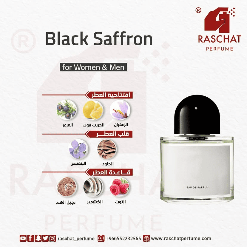 - الزعفران: يضفي لمسة من الفخامة والغموض في بداية العطر.