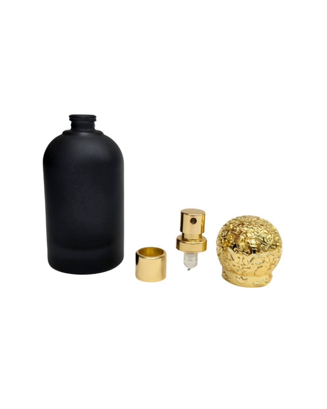تتميز هذه المجموعة بلمساتها الفاخرة التي تجعلها مناسبة لتقديم العطور الفاخرة أو كهدية مميزة. اللون الذهبي للبخاخ والكُلر والغطاء يضيف إحساسًا بالرقي والجاذبية، بينما يعكس اللون الأسود مظهرًا كلاسيكيًا يليق بجميع المناسبات.
